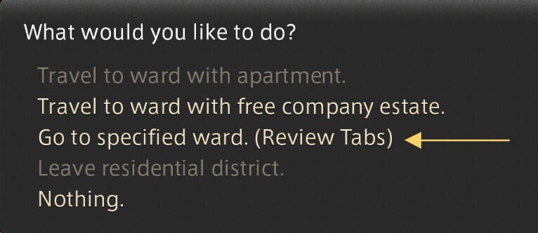 Once you click on the "Residential District Aethernet" you will have to option to "Go to a specified ward", you will need to know which ward the venue is in, as there are many identical wards to choose from.